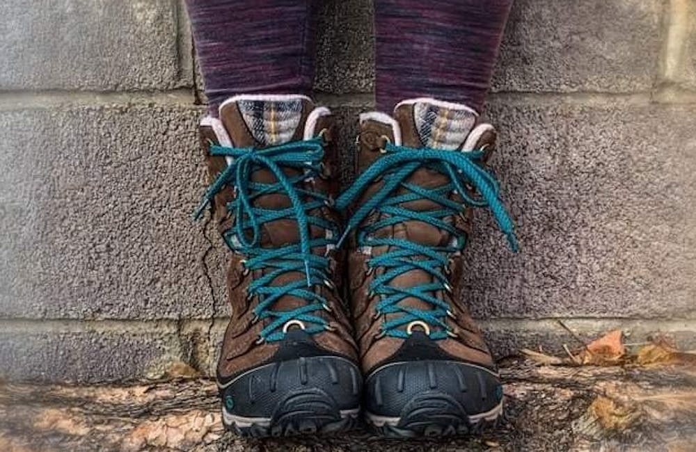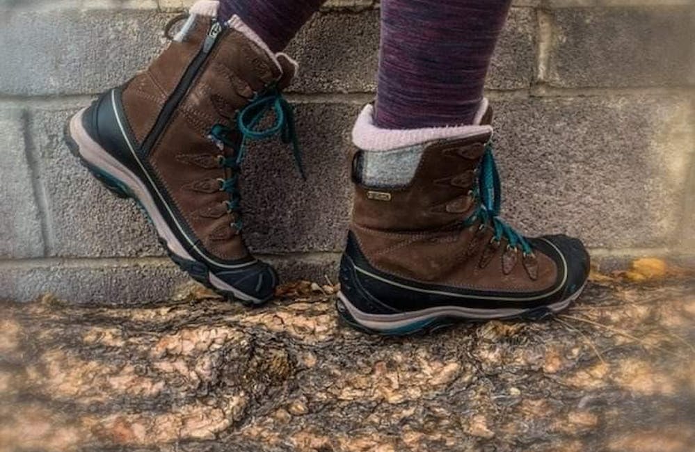 For a winter hiking boot, the boot height, type of waterproofing, type of insulation fabric, breathability, and other features will often be listed listed. Additional items to look for are overall boot stiffness, the cuffs, lugs on the sole for traction, a reinforced toe cap, gaiter rings, and if it has an enclosed tongue (gusseted tongue). Insulated winter hiking boots should all be compatible with snowshoes and micro-spikes, but only certain hiking boots will be compatible with crampons. Specialized designs such as Oboz Insulated boots host a unique thermal insole with an insulated top sheet and a mylar bottom sheet to reflect heat back to your foot. In the photo below, I have the extremely comfortable and warm Women’s Sapphire 8” Insulated Waterproof boot. A similar boot is the Sawtooth II 8" Insulated B-Dry boot, as featured in Outside Magazine’s Winter Buyers’ Guide.